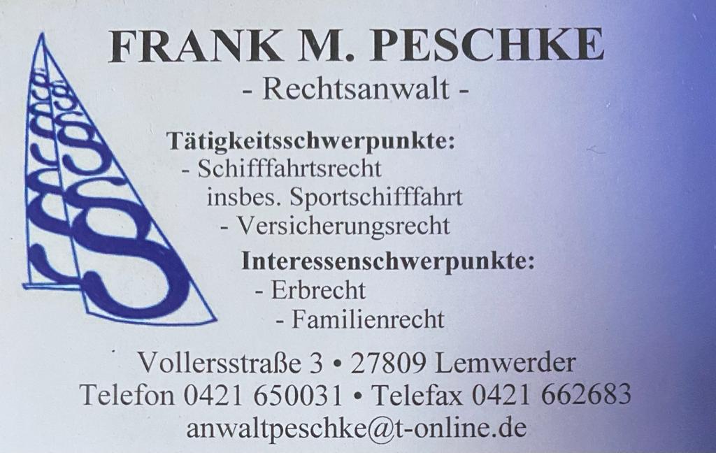 Von 2001 bis 2008 war Rechtsanwalt Peschke 1. Vorsitzender des Weser Yacht Clubs Bremen und gleichzeitig Sportwart dieses Vereins.
